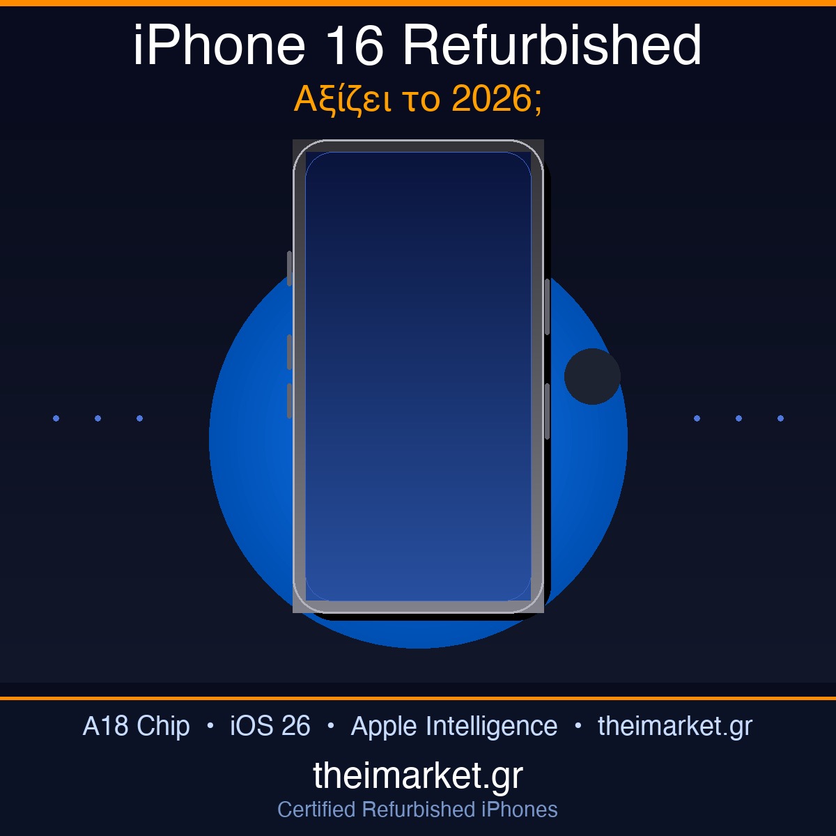 Αναζητάς μεταχειρισμένο iPhone που να μοιάζει και να λειτουργεί σαν καινούργιο; Στο theimarket.gr θα βρεις αυτό που χρειάζεσαι! Όλες μας οι συσκευές είναι im Certified, περνούν αυστηρό τεχνικό έλεγχο 120+ σημείων και συνοδεύονται από έως 3 χρόνια εγγύηση και μπαταρία με υγεία έως 100%.